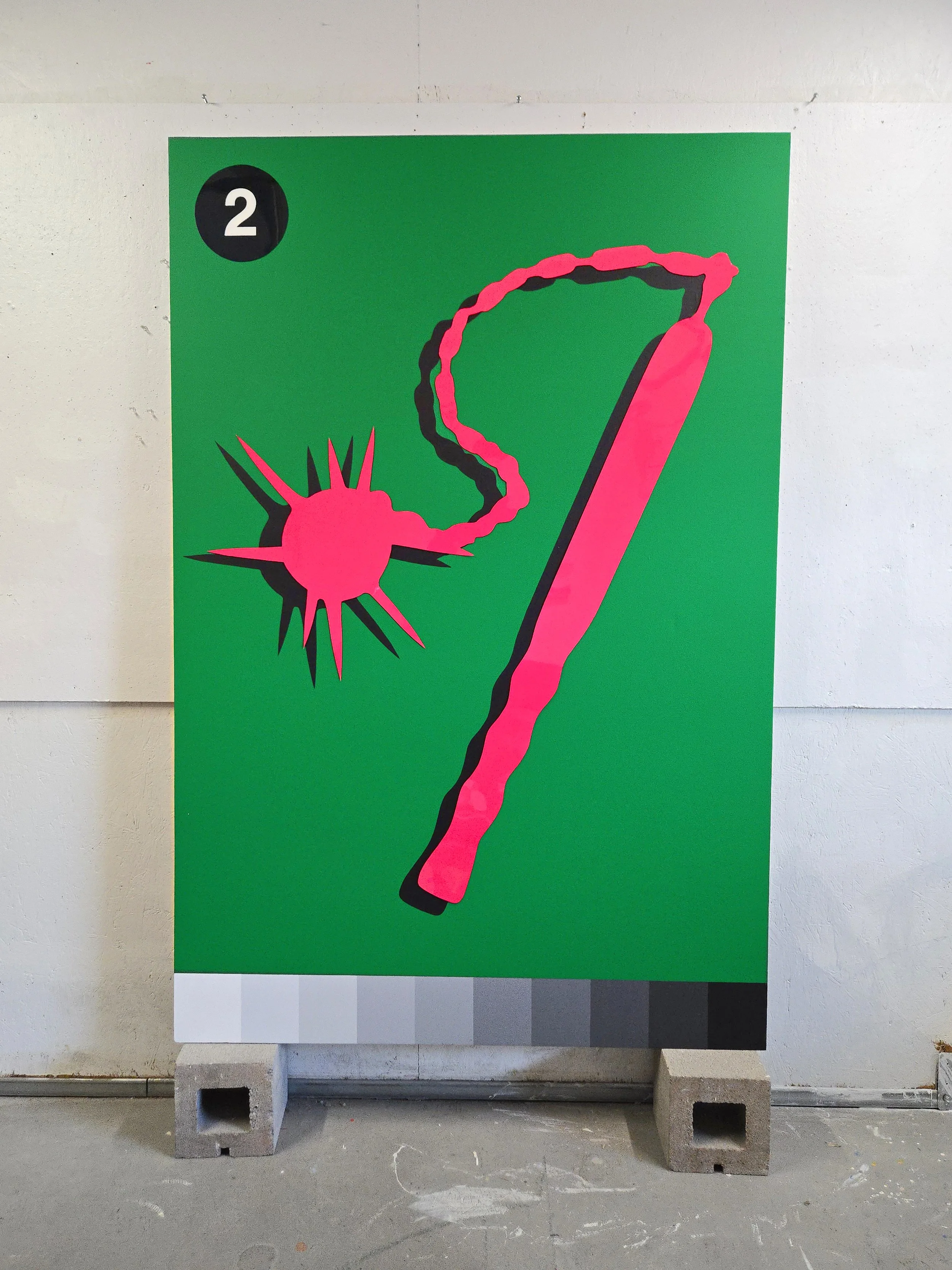 Weapon of Choice (2024) depicts various psychological tactics commonly used for power and control as simplified prototypes. Each weapon is inspired by a different characteristic from the shadow-side of the human psyche and assigned an object through word association. Bright colors, clean lines, and easily identifiable imagery present these nuanced and subtle traits as exciting weapons to choose from.